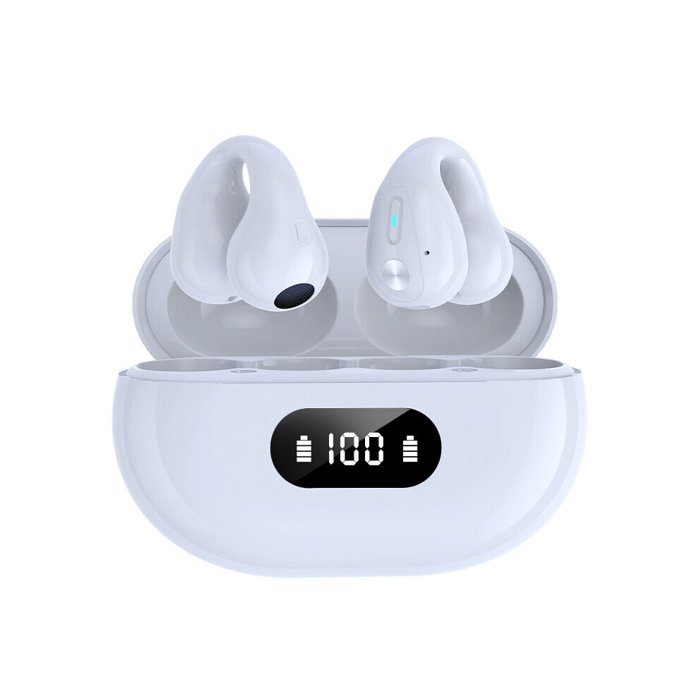 (a-Ceramic white) New TWS Wireless Headphones Bluetooth 5.3 Bone Conduction Earphones Earclip Design Touch Control LED Earbuds Sports Headset