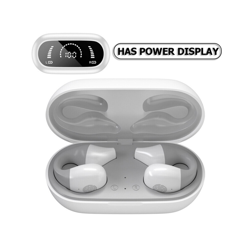(a-white) 2022 NEW TWS Wireless Headphones Bluetooth 5.2 Bone Conduction Earphones Earclip Design Touch Control LED Earbuds Sports Headset