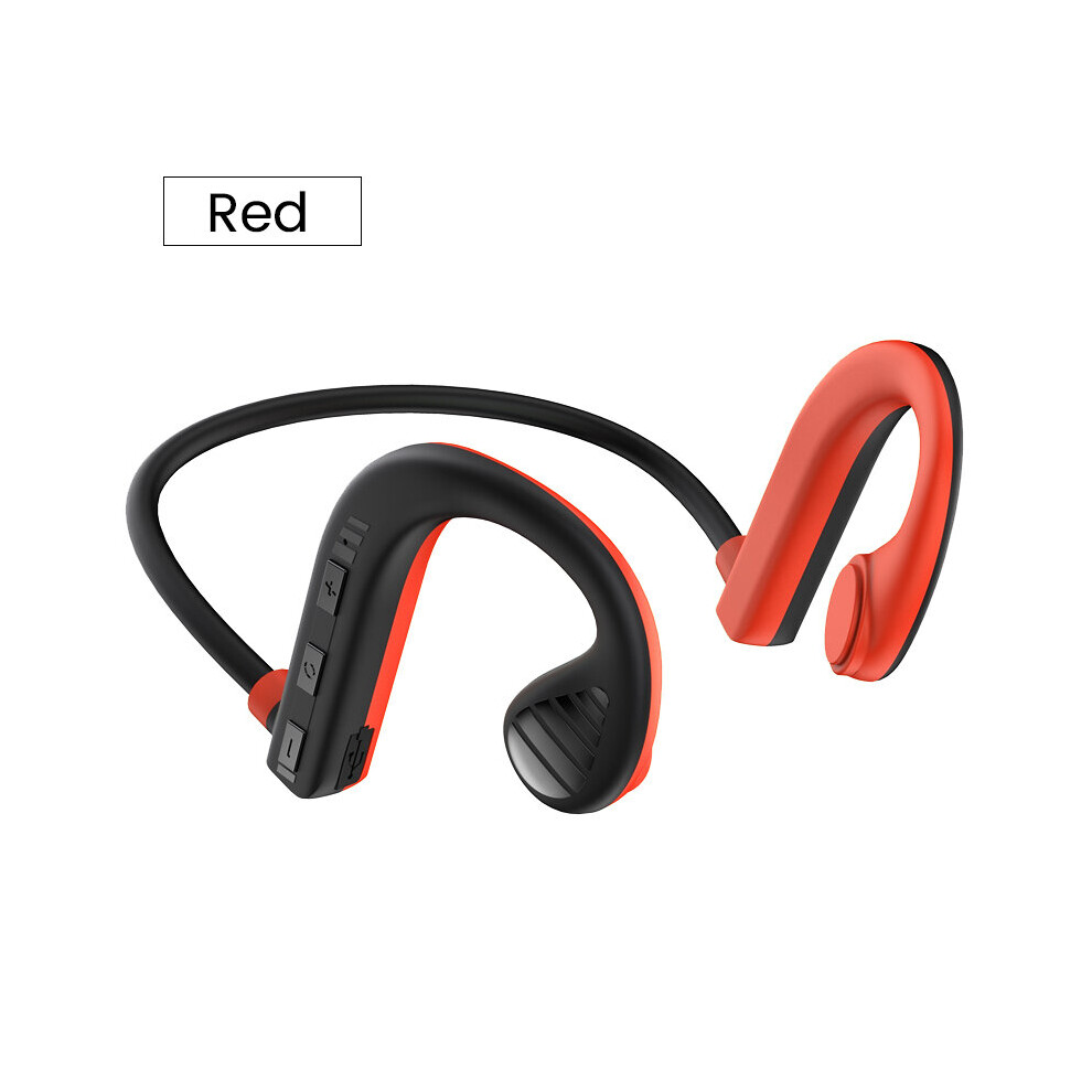 (Red) Wireless bluetooth Bone Conduction Earphones Stereo Earbuds Sport Waterproof Headphone Noise Cancellation Headset With Mic