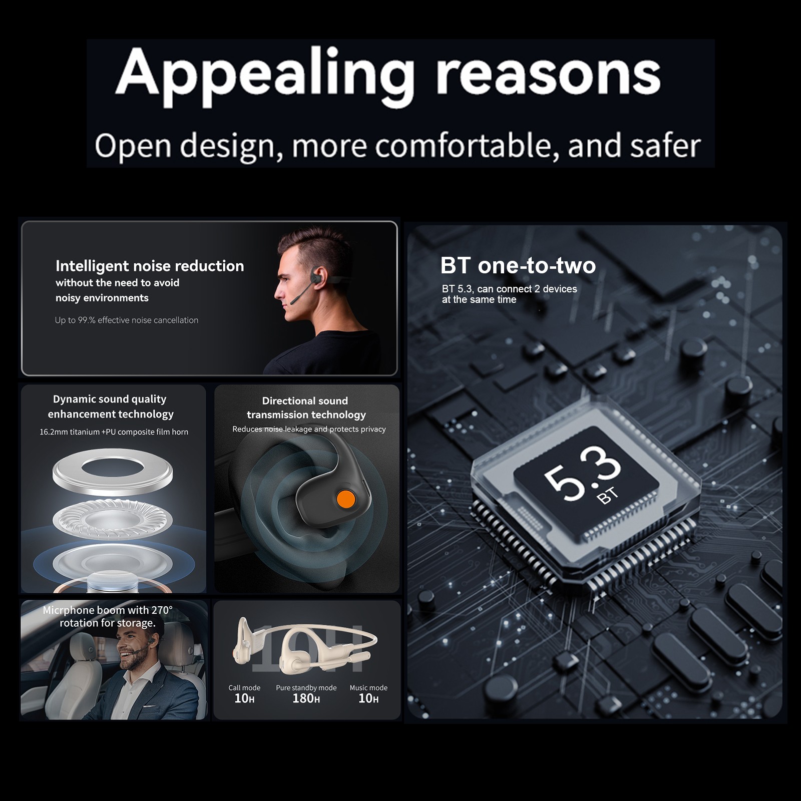 DG09 Bone Conduction Headset Open Talk Noise Canceling BT Headset Mark Bar 270°r