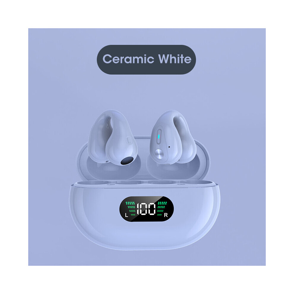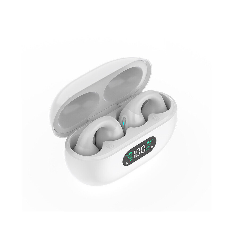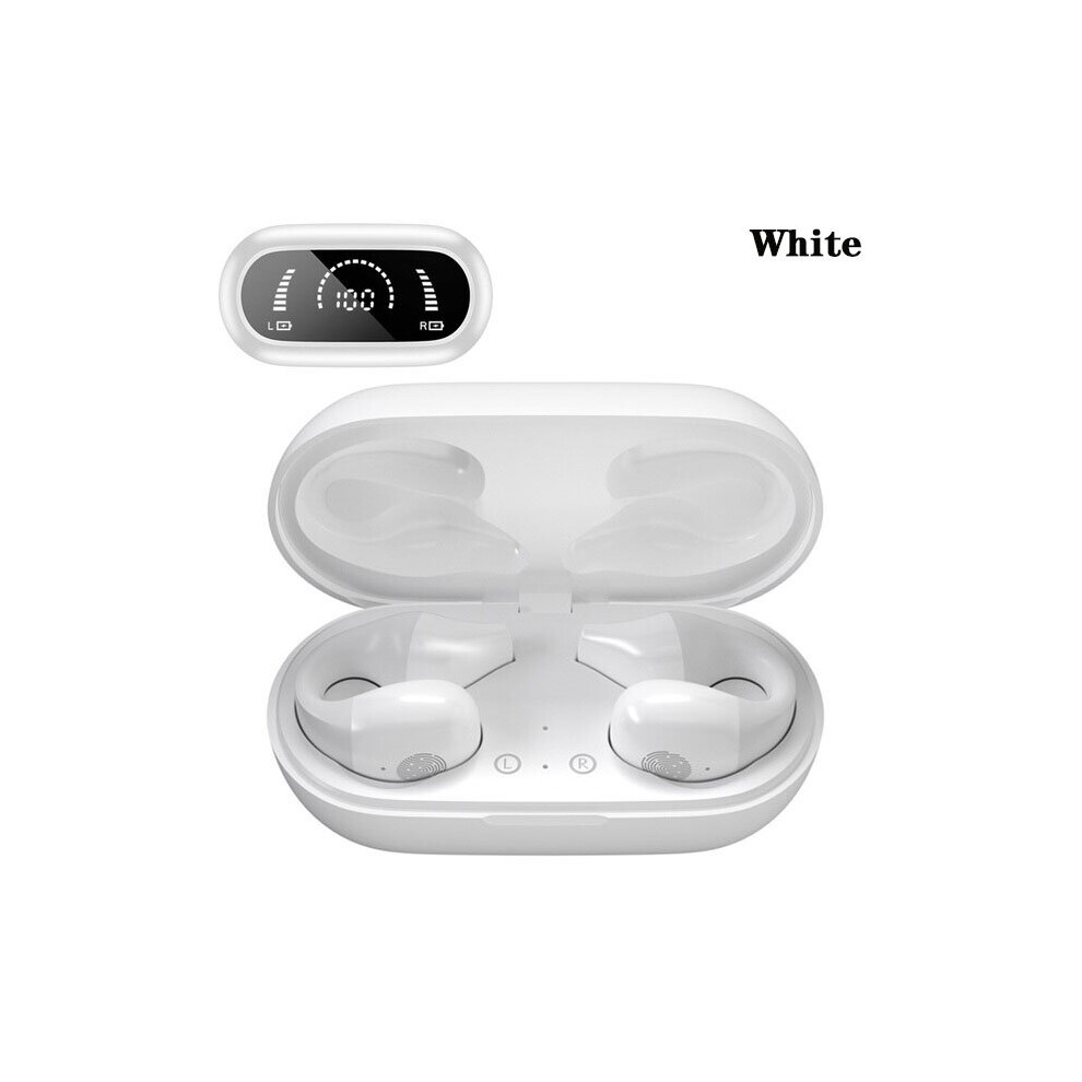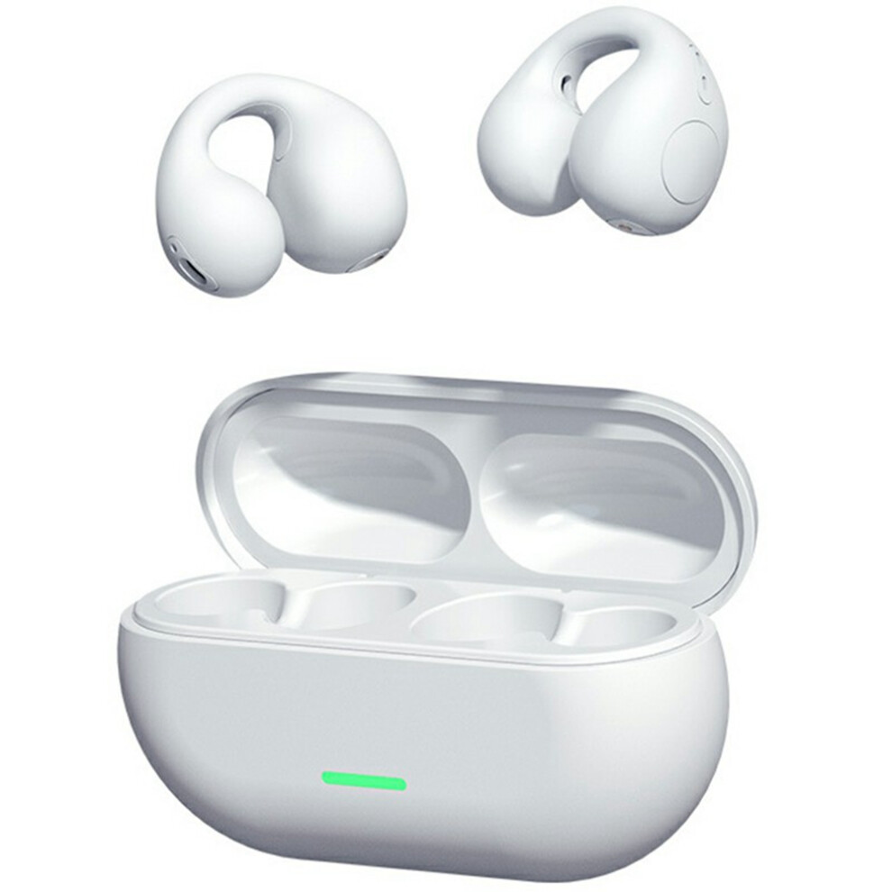 (a-White) Wireless Headphones Bluetooth 5.3 Bone Conduction Earphones Ear-clip Touch Control Earbuds Sports Headset For All Smart Phones