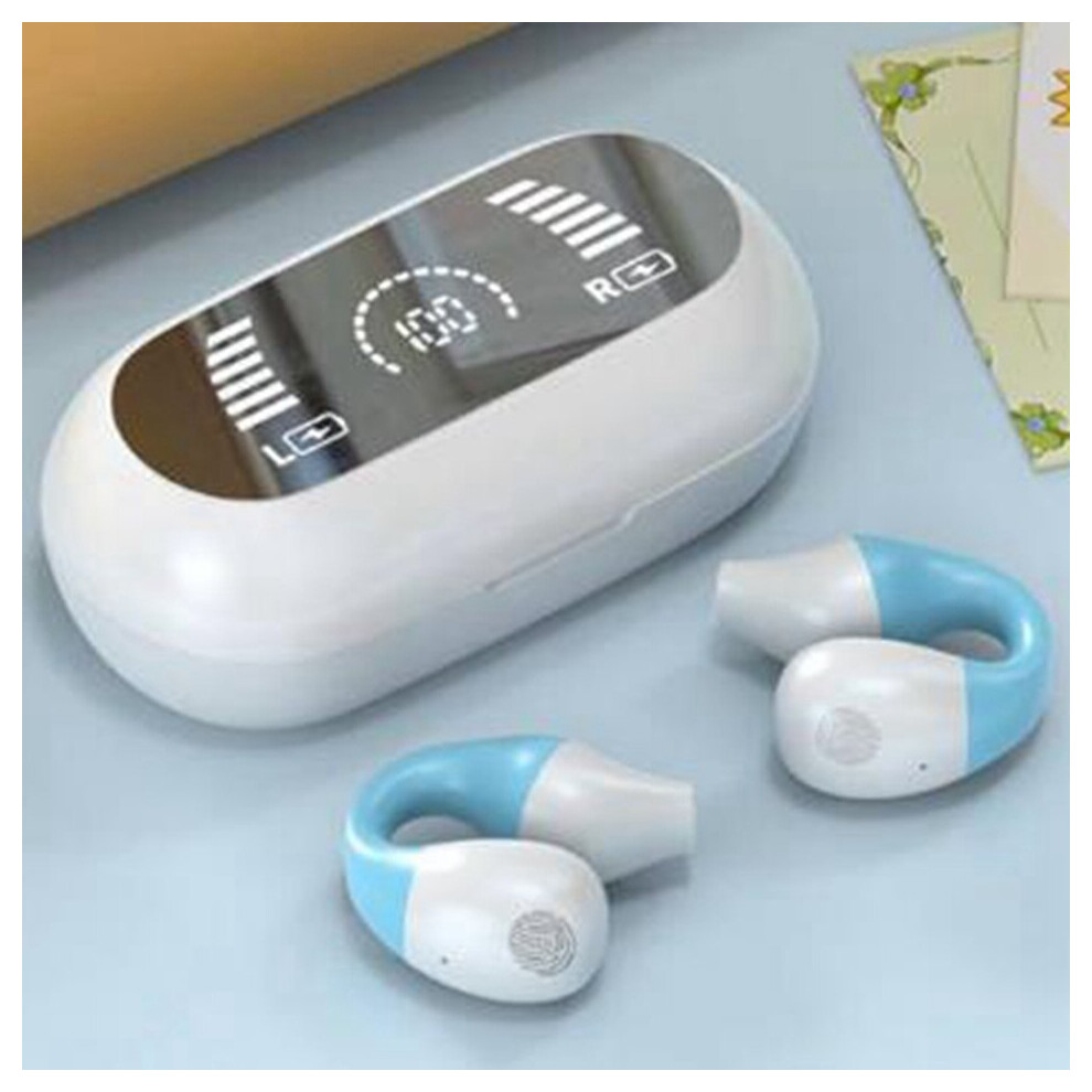 (a-White Blue) Wireless Headphones Bluetooth 5.3 Bone Conduction Earphones Ear-clip Touch Control Earbuds Sports Headset For All Smart Phones