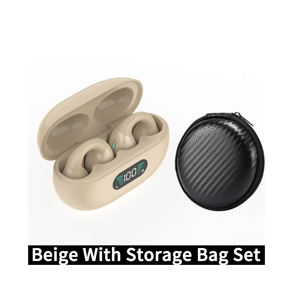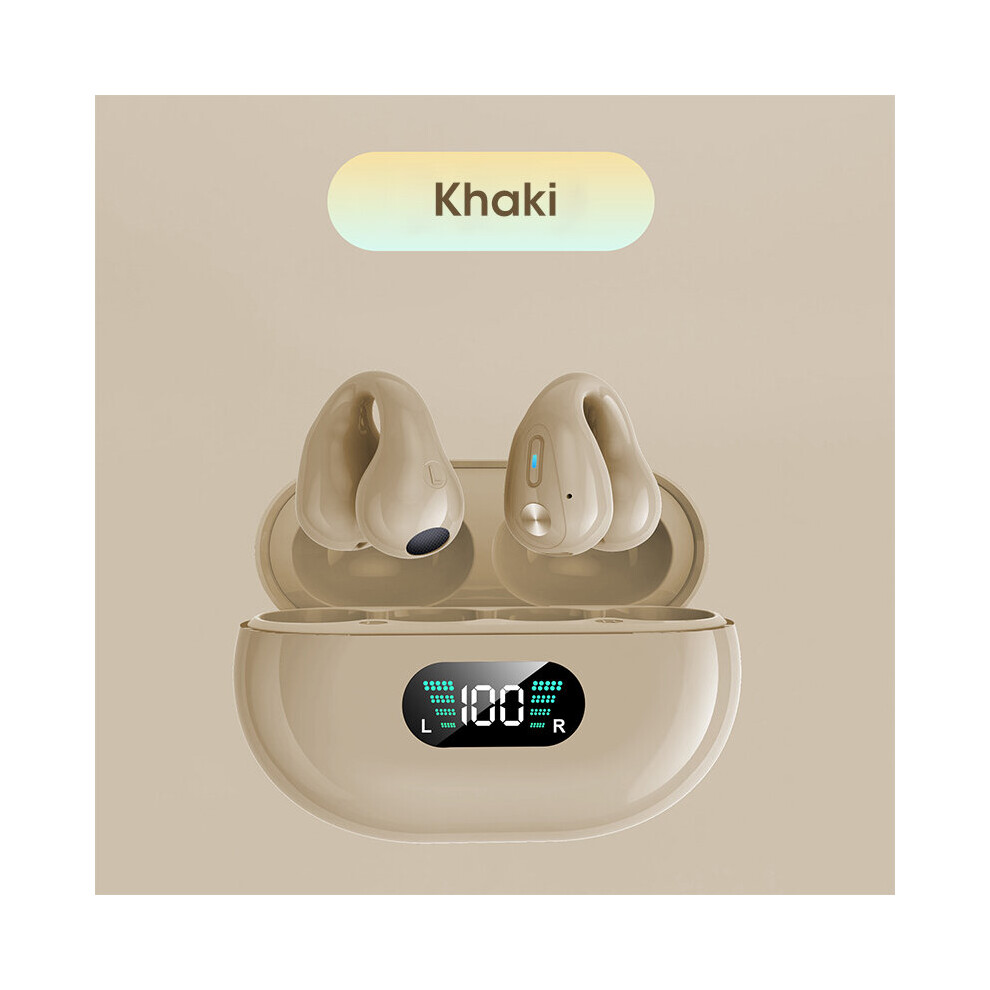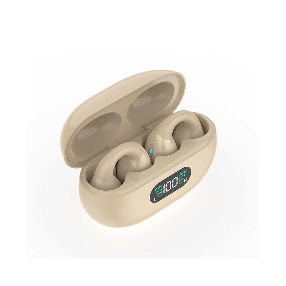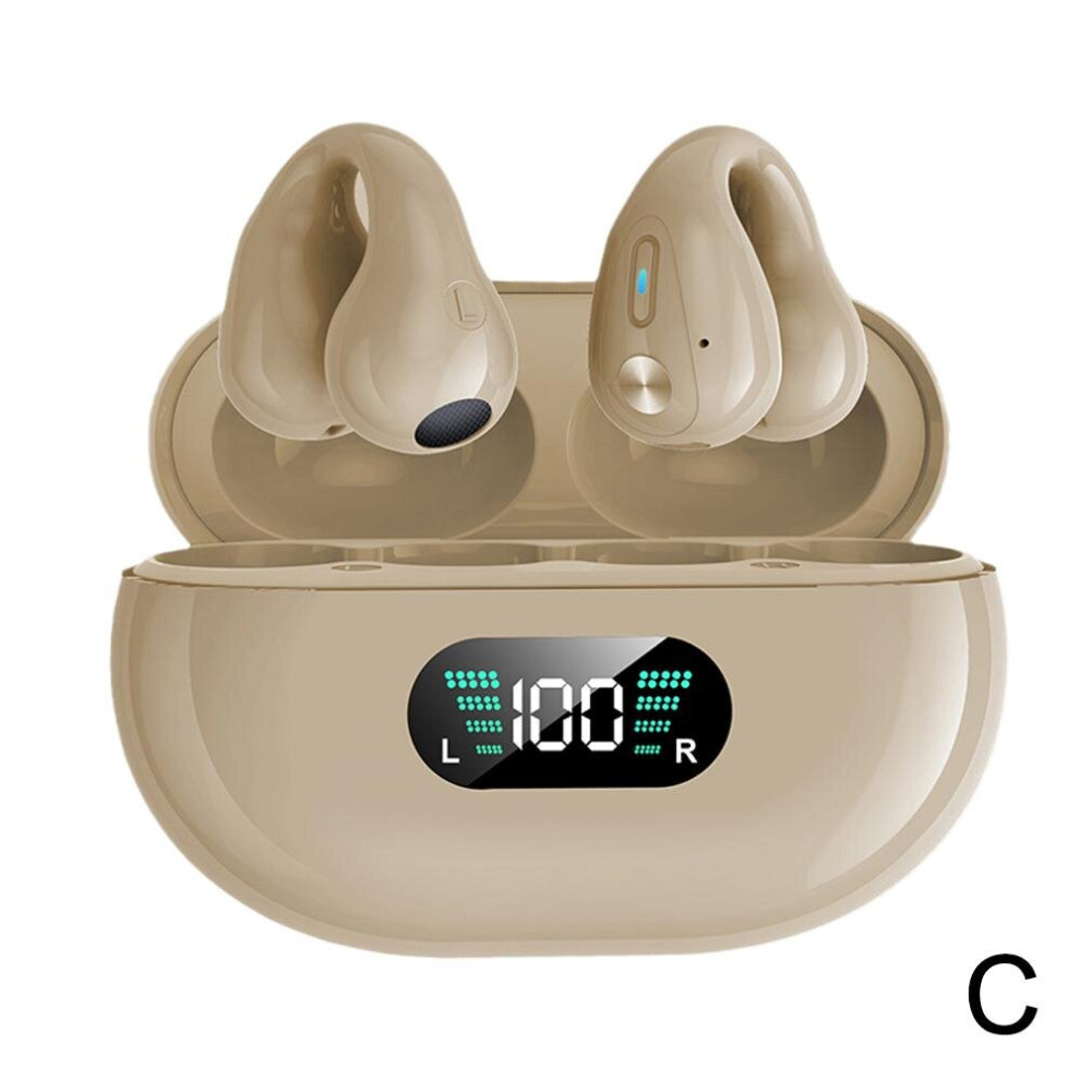(a-Oatmeal) TWS Wireless Headphones Bluetooth 5.2 Bone Conduction Earphones Earclip Design Touch Control Earbuds Sports Headset for Phones