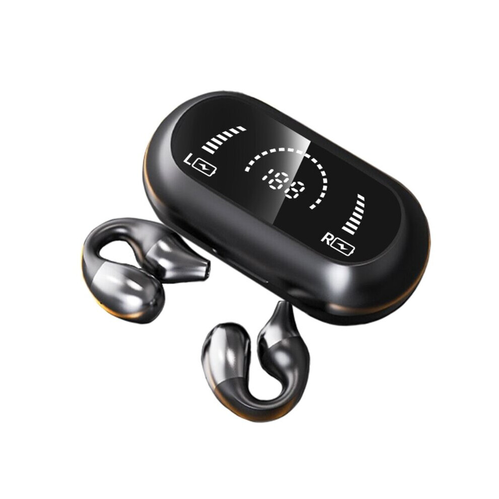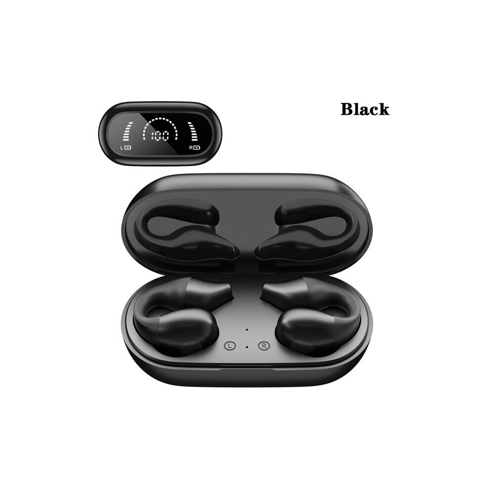 (a-1PC Black) V18 Bone Conduction Headphones Bluetooth5.0 Earbuds With Earhooks With LED Digital Display Business Wireless Earphone For Phones