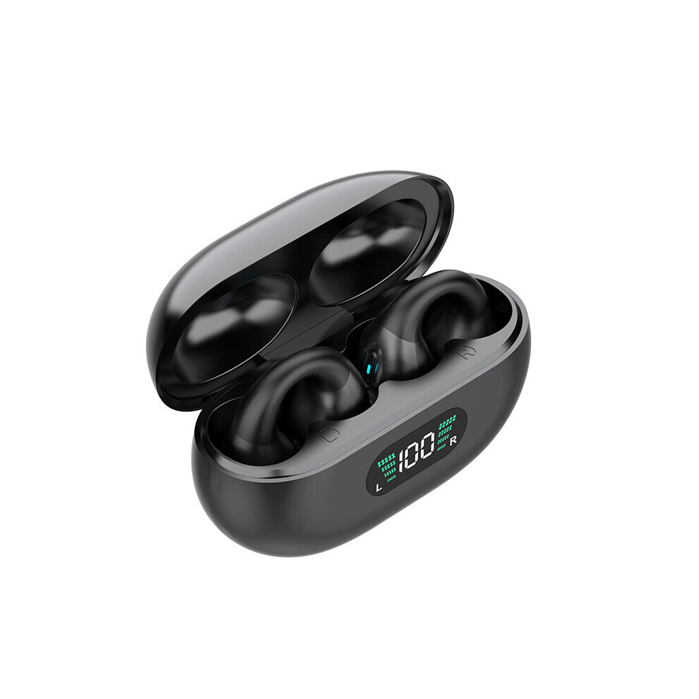 (a-Black) Wireless Headphones Bluetooth 5.3 Bone Conduction Earphones Ear-clip Touch Control Earbuds Sports Headset For All Smart Phones