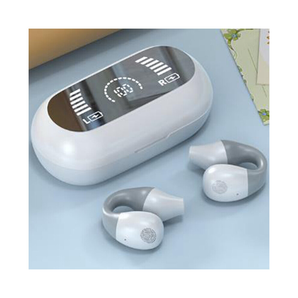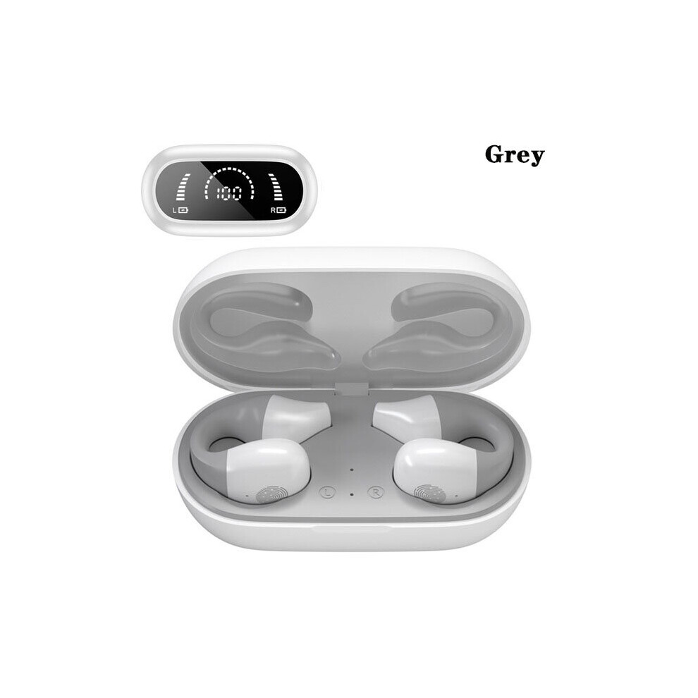 (a-White Grey) Wireless Headphones Bluetooth 5.3 Bone Conduction Earphones Ear-clip Touch Control Earbuds Sports Headset For All Smart Phones