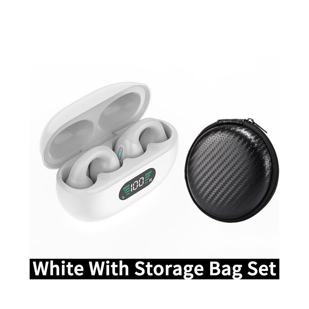 (a-White) S03 Wireless Earbuds Bone Conduction Ear Hook Sport Headset Clip-on Earphone Universal for Smart Phones