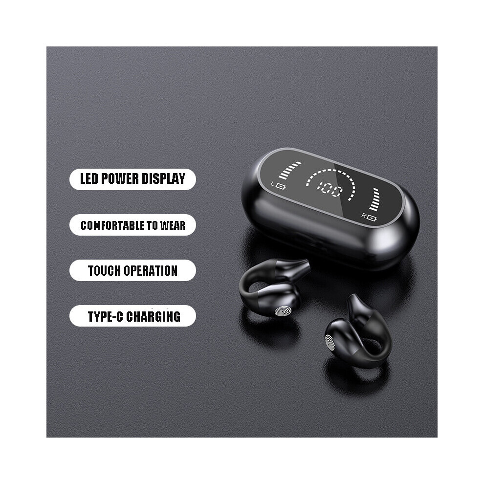 (a-Black) TWS Wireless Headphones Bluetooth 5.2 Bone Conduction Earphones Earclip Design Touch Control Earbuds Sports Headset for Phones