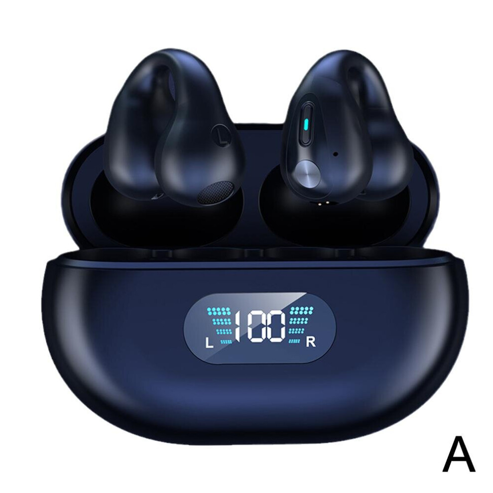 (a-1PC Blue) V18 Bone Conduction Headphones Bluetooth5.0 Earbuds With Earhooks With LED Digital Display Business Wireless Earphone For Phones