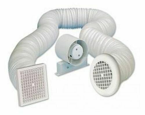 Inline Shower Fan Extractor Kit 4" 100mm Bathroom with Loft Ducting & Grilles