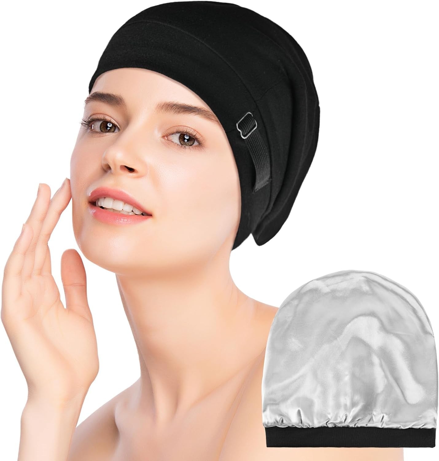 2-Pack Silk Bonnet for Sleeping, Silk Hair Bonnet Set with Adjustable Band, Sat