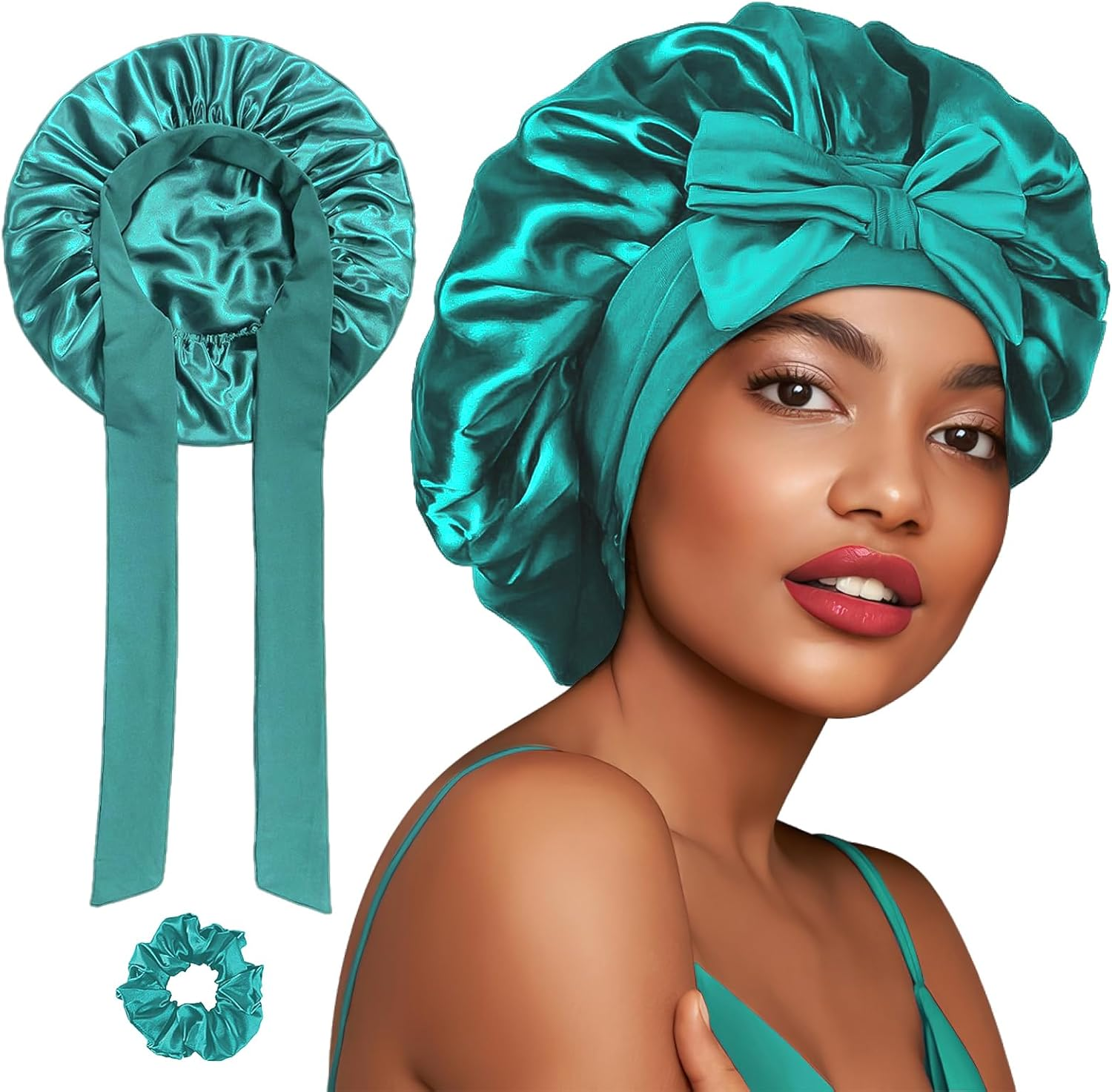 4 Pieces Extra Large Satin Bonnet for Curly Hair, Long Hair Sleep Cap with Wide