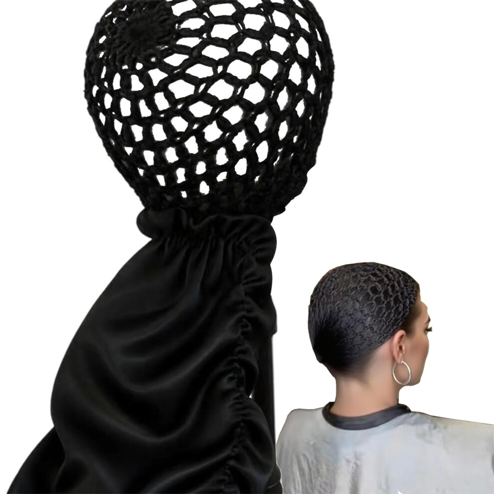 2 in 1 Adjustable Silk Hair Bonnet with Hair Net and Scarf, Reversible Satin Sleep Cap for Curly Braids Long Hair Black