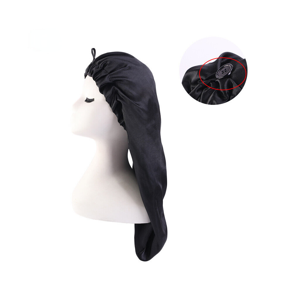 Satin Bonnet for Women Long Hair Hat With Button Sleeping Hats Wrap Night Cap Hair Care Head Wraps Curly Hair Accessories