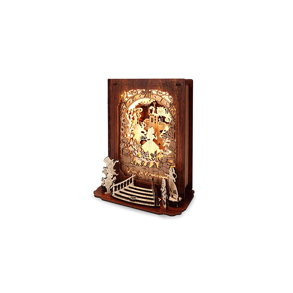 Alice in Wonderland 3D Puzzle Nightlight – DIY 3D LED Book Lamp – 3D Wood Puzzles Décor Lamp for Kids and Adults