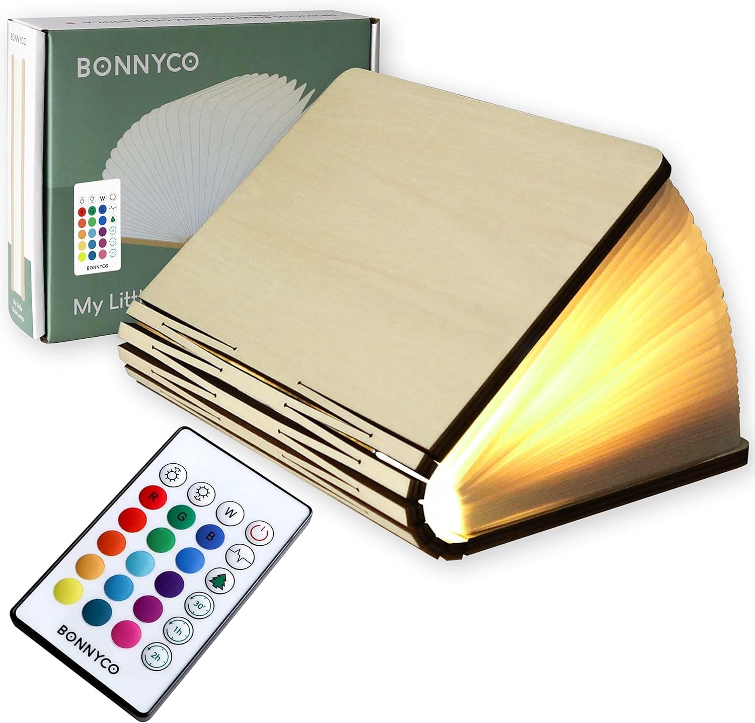 BONNYCO Led Book Light Wooden Folding Lamp with Remote Control, 16 Colours and Timer. Table Book Lamp Night Light Perfect for Home, Office, Room Decor. Christmas, Birthday Gifts for Women and Men