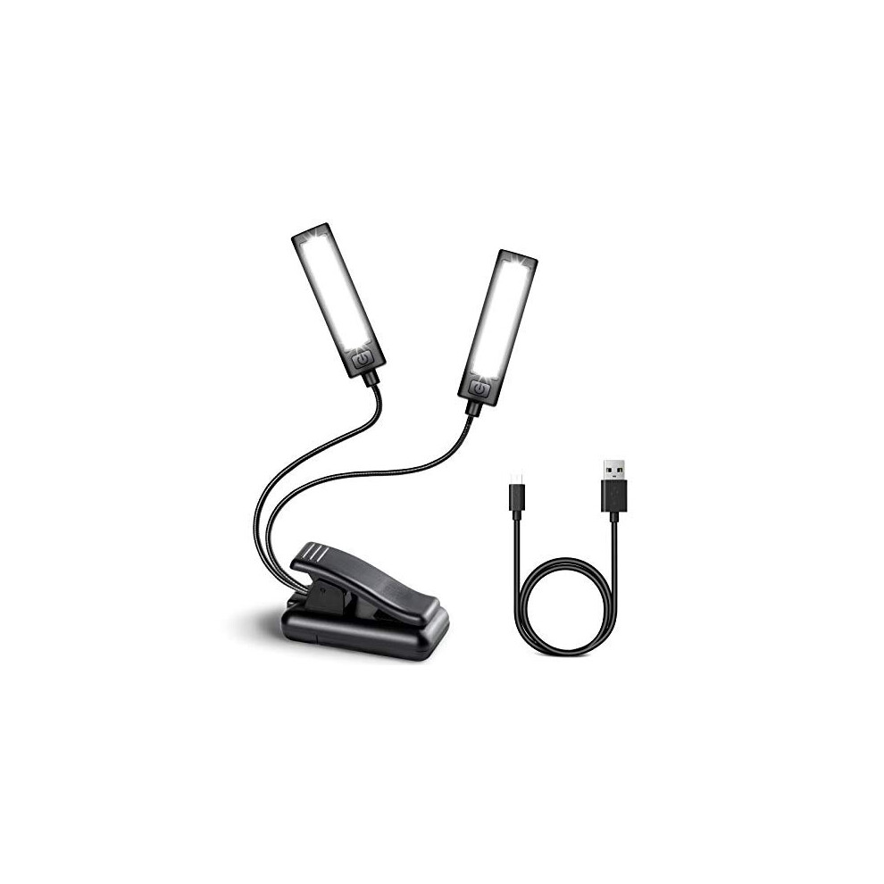 TIGER MSL35-6BT Dual Head Music Stand Light with 6x LEDs Clip On Portable Book Lamp with Flexible Gooseneck and Individual On/Off Dim Settings Battery Operated or USB/Mains Black