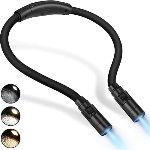 LUXJET 9 Modes LED Book Light Neck Lamp, LED Reading Lights with 3 Colours and 3 Brightness Levels, Hug Book Light for Reading in Bed at Night, Knitting, Handcraft Work, Crochet (Black)