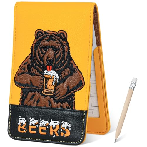 LZFAN Golf Scorecard Holder & Yardage Book Cover, Golf Accessories Yellow Beer Bear Premium Leather Yardage Book Holders Cover