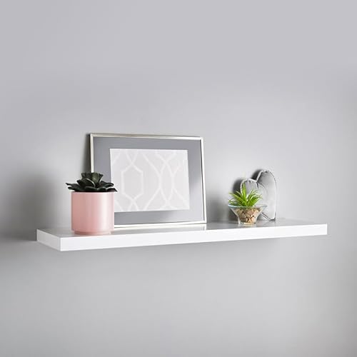 spot on dealz 100cm Floating Shelf - White High Gloss Wall Mounted Shelf for Living Room, Bedroom, Kitchen, Office, Modern Home Décor & Storage Solution