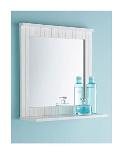 spot on dealz® Bathroom Wall Mounted Mirror with Cosmetics Shelf Hanging Wooden Frame Elegant Style Clean lines with Crisp White Finish Modern Traditional Decoration