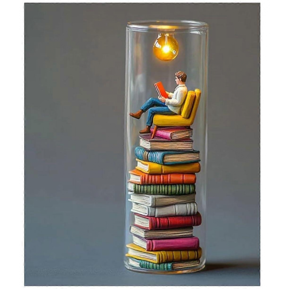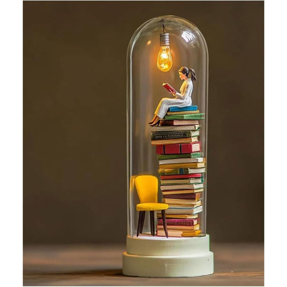 Reader Night Light Miniature Book Lover Lamp With LED Light Reading Figurine Tiny Bookshelf Library Statue Model E Gift