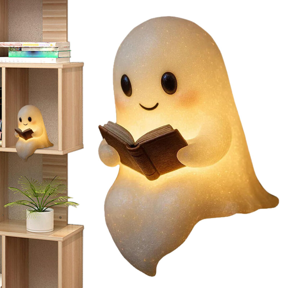 Fegtrtyoa Cute Ghost Reading Book Lamp with 3D LED Night Light, Halloween Decor for Bedroom Shelf Party, Little Ghost Lamp L