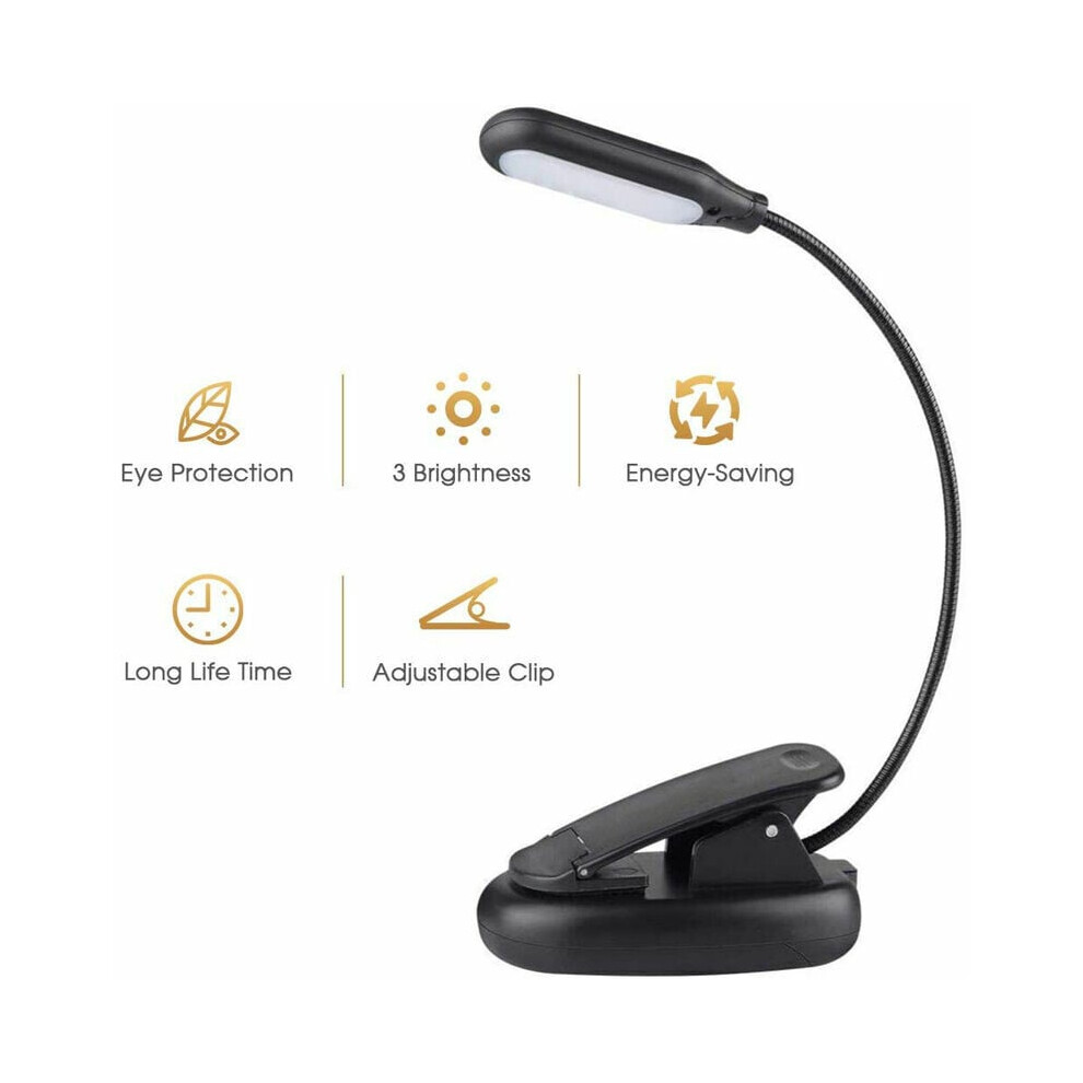 Reading lamp book clamp, dimmable book lamp with 6 LEDs, 3 brightness modes , USB rechargeable clamp