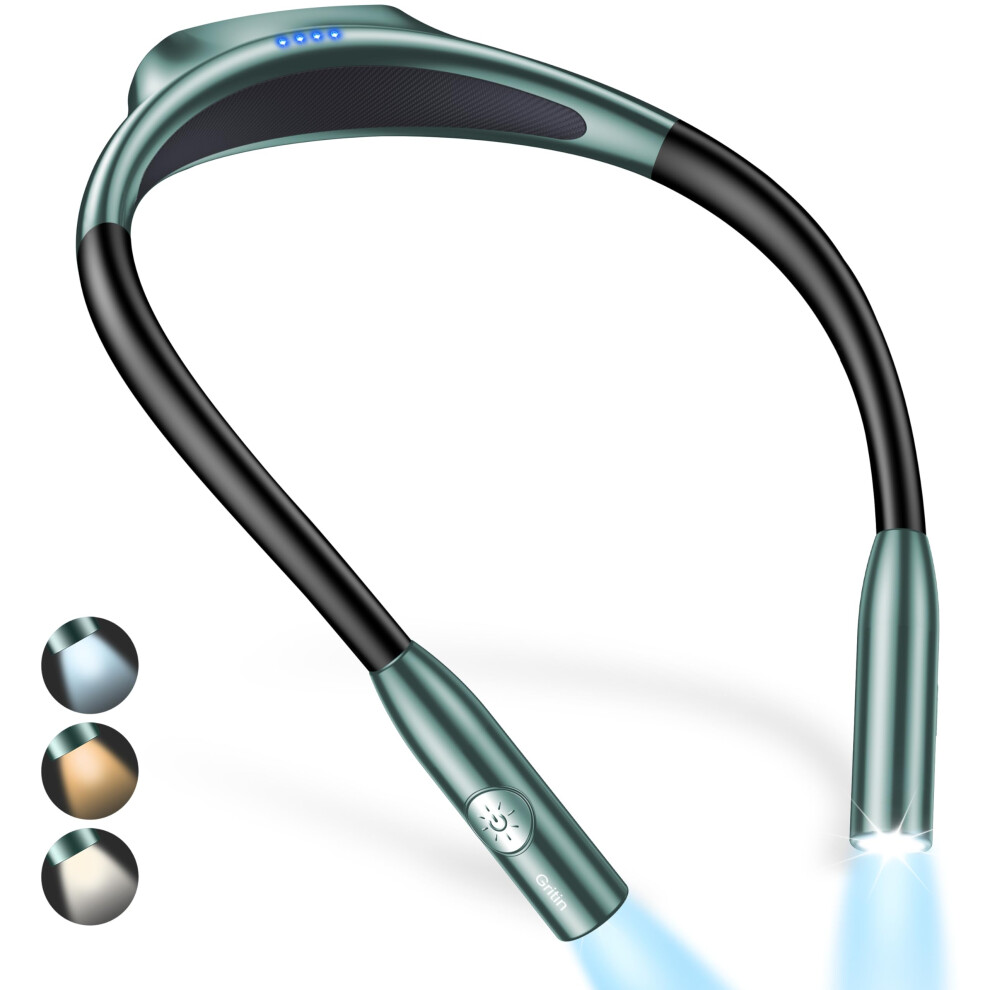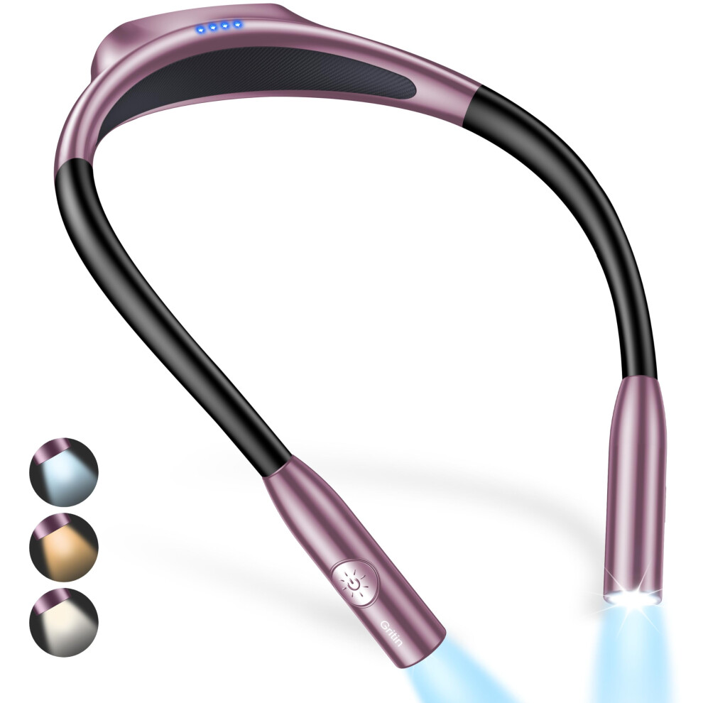 Gritin Neck Reading Light Rechargeable, Book Light Lamp with Memory Function for Reading at Night, 3 Eye-Protecting Modes - Stepless Dimming, Long Ba