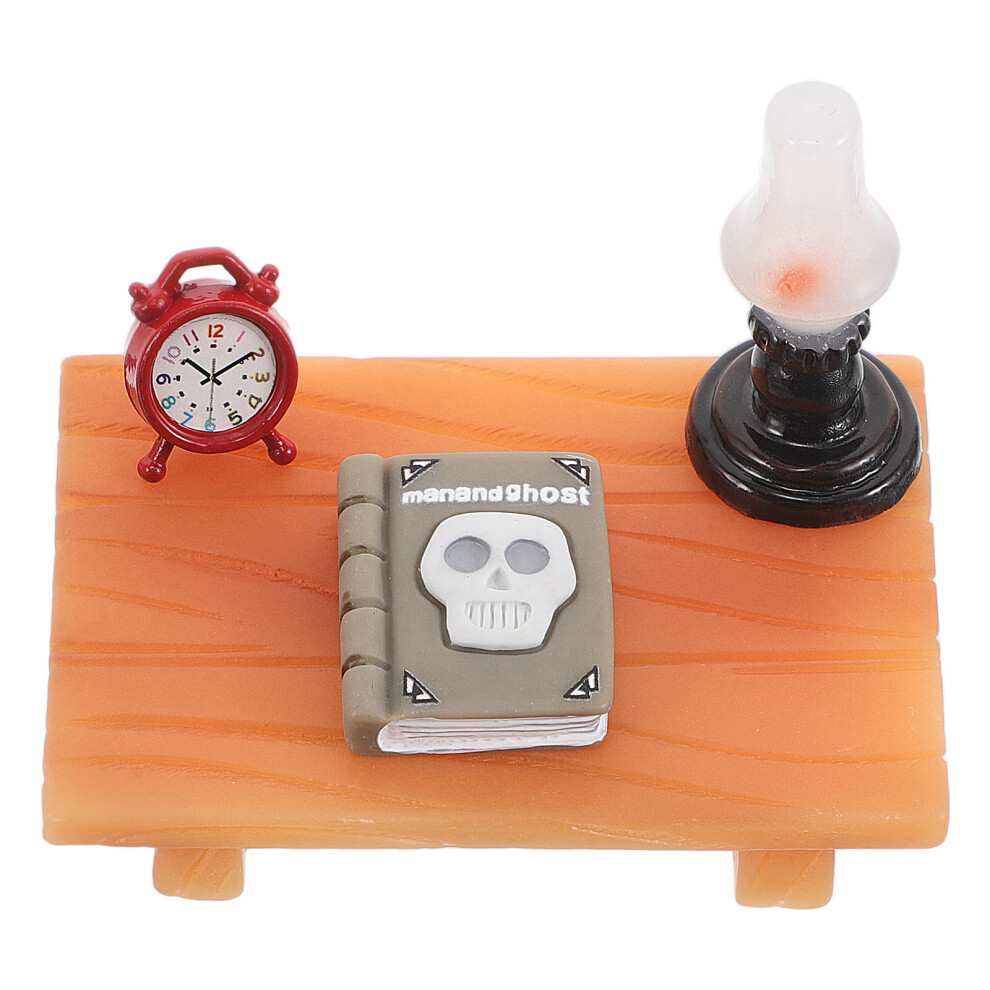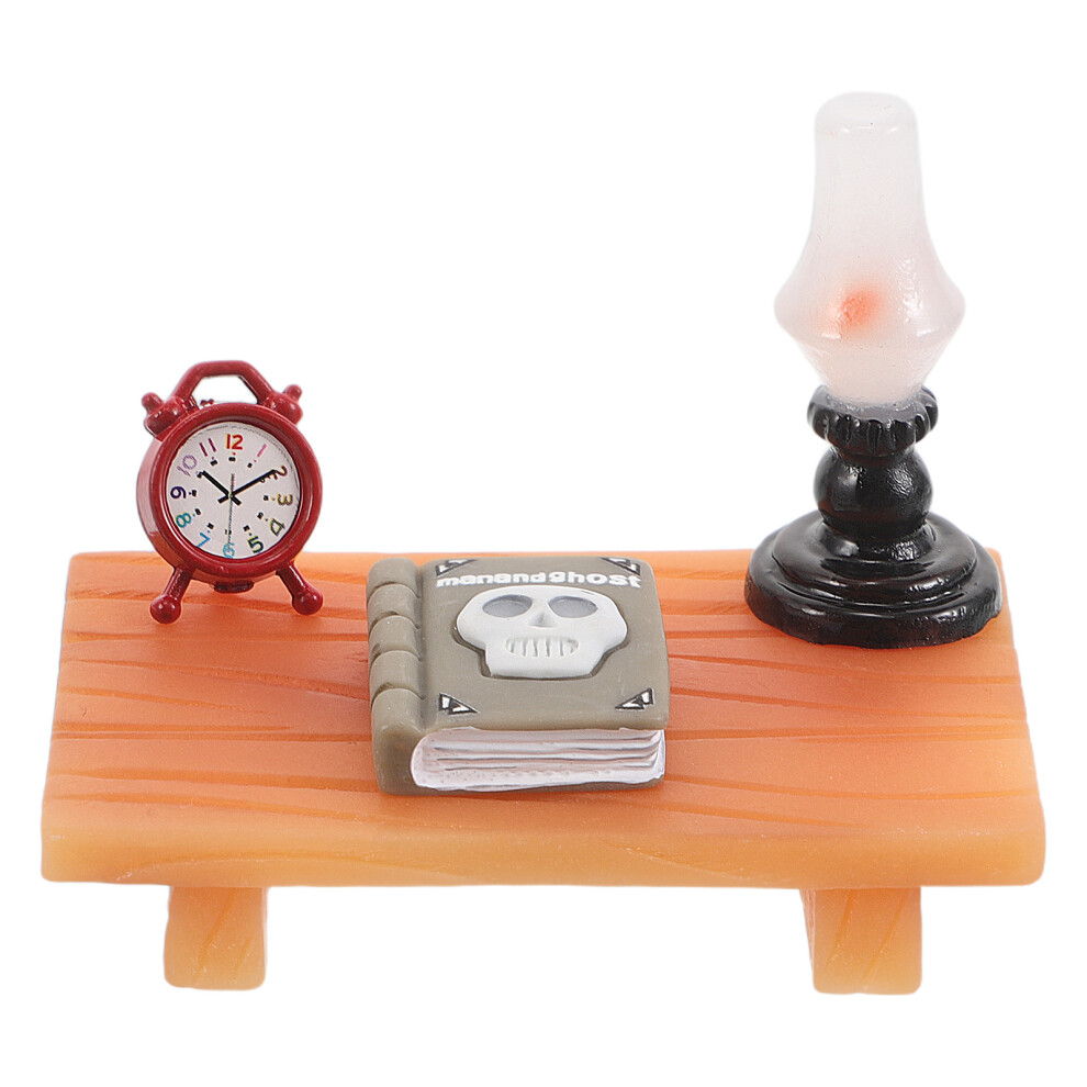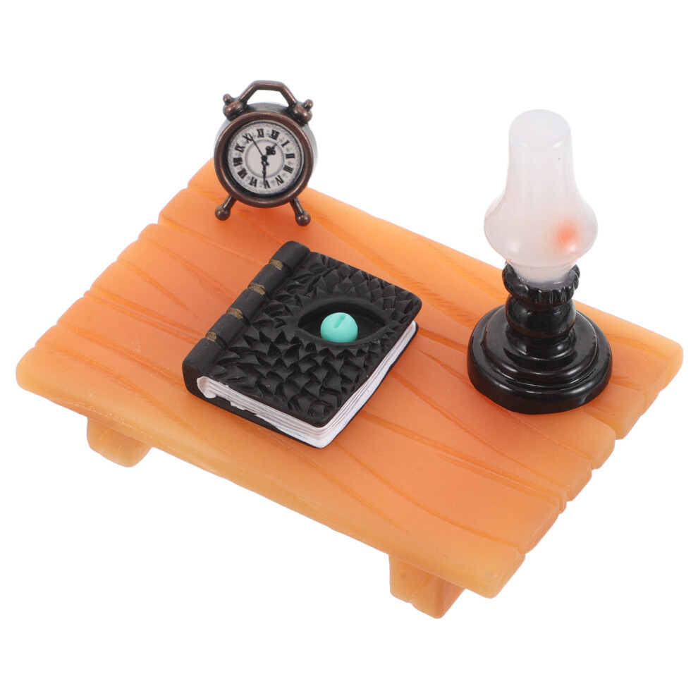 1Set Dollhouse Miniature Desk And Book Set With Lamp Alarm Clock
