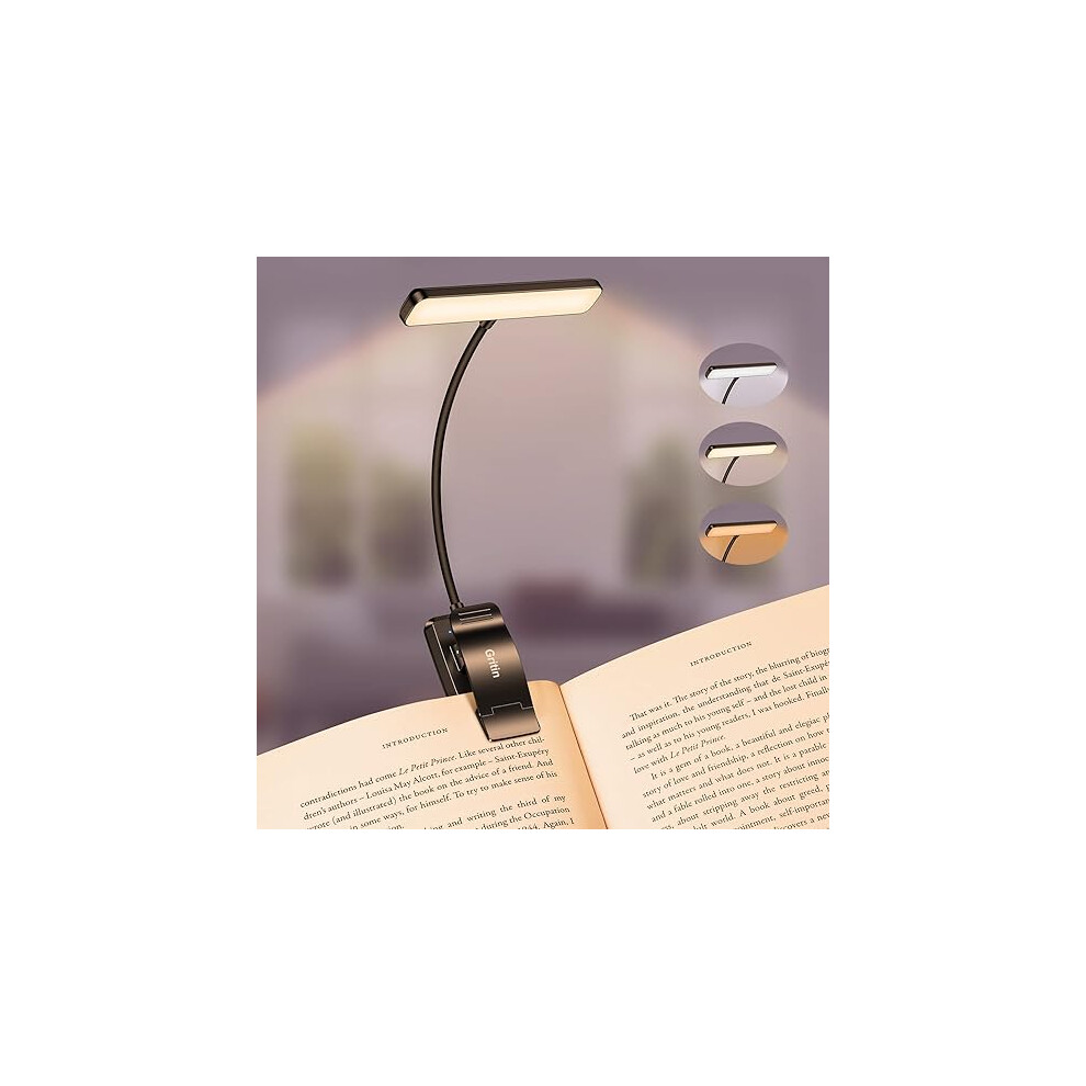 Cenei LED Rechargeable Clip-on Book Lamp with 3 Colors, 5 Brightness Levels for Bed Reading, Night Light Eye Protection, Mini Book Lamp
