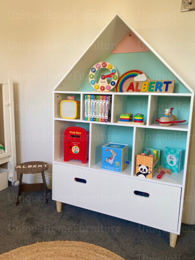 Kids Wooden Bookcase White Storage Shelf Unit Retro Display Cabinet Chest Drawer