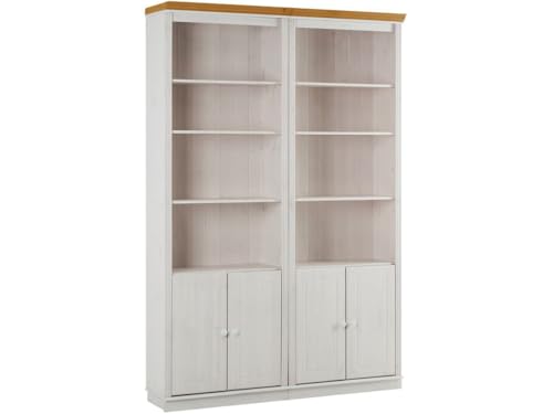 Anita Wall Unit A with 2 bookcases and 4 wooden doors in white honey, 148x34x223 cm