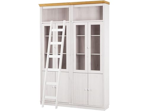 Anita Wall Unit J with 2 bookcases, 4 glass doors and 4 wooden doors and 1 ladder in white honey, 148x34x223 cm