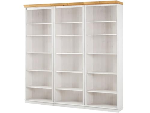 Anita Wall Unit K with 3 bookcases in white honey, 222x34x223 cm