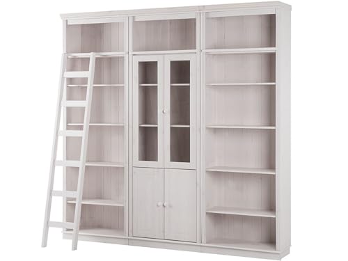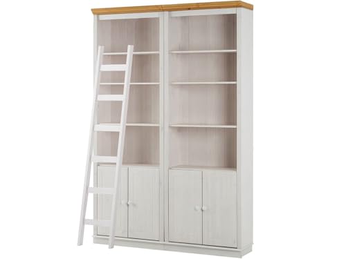 Anita Wall Unit G with 2 bookcases, 4 wooden doors and 1 ladder in white honey, 148x34x223 cm