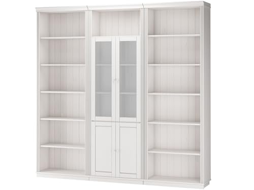 Anita Wall Unit 4 with 3 bookcases, 6 wooden doors, 2 glass doors in white lacquer,37x223x222 cm (DxHxW)