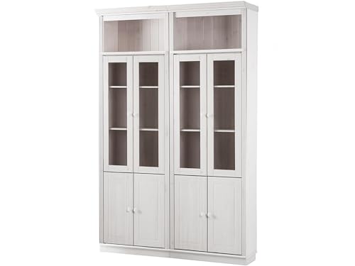 Anita Wall Unit I with 2 bookcases, 4 wooden doors and 4 glass doors in white honey, 148x34x 223 cm