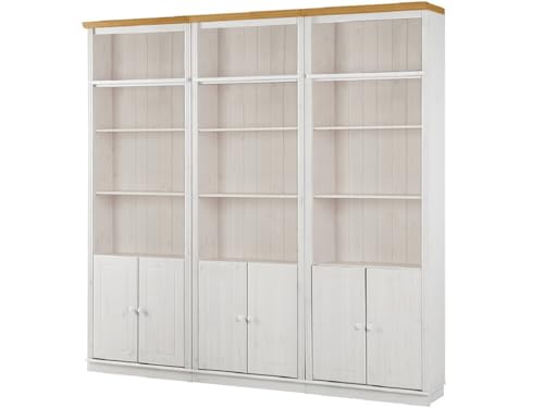Anita Wall Unit B with 3 bookcases and 6 wooden doors in white honey, 222x34x223 cm