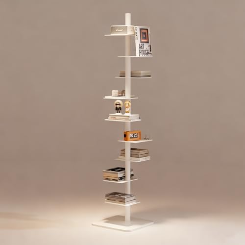 QIUCHIREMAI 9 Tier Metal Vertical Bookshelf Tower,Tall Ladder Bookcase Floating Shelf Spine Bookshelf Tower for Home Office, Entryway, and Living Room - Easy Assembly,Space Saving white
