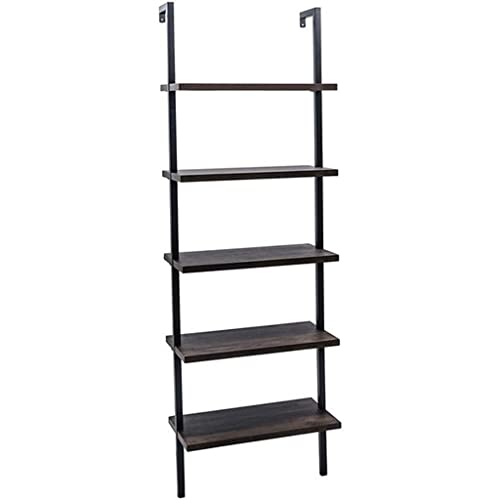 YMYNY Bookshelf Wall Mounted, Ladder Shelf, 5-Tier Bookcase Rack, Storage Unit with Metal Frame, Industrial Floating Wall Shelf for Living Room, Kitchen, Office, 40×30×178CM Rustic Brown HBC015H