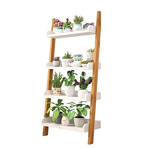 Wooden Leaning Bookshelf/Wall Ladder Shelf/Plants Stand for Living Room, Bedroom, Bathroom & Patio Garden, Home Office Ornaments Flower Display Holder