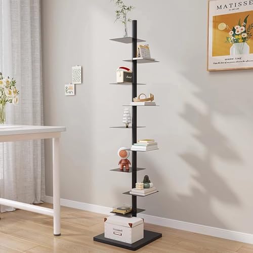 QIUCHIREMAI 9 Tier Metal Vertical Bookshelf Tower,Tall Ladder Bookcase Floating Shelf Spine Bookshelf Tower for Home Office, Entryway, and Living Room - Easy Assembly,Space Saving black