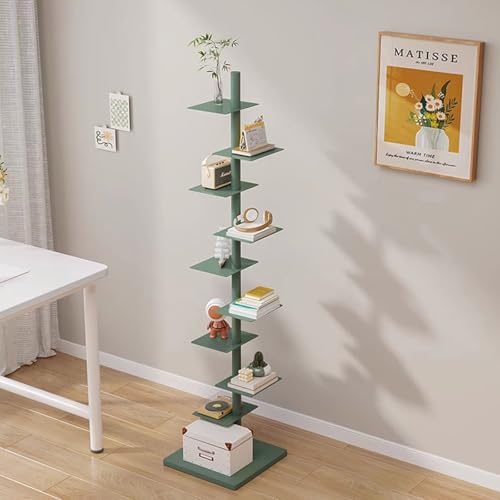 QIUCHIREMAI 9 Tier Metal Vertical Bookshelf Tower,Tall Ladder Bookcase Floating Shelf Spine Bookshelf Tower for Home Office, Entryway, and Living Room - Easy Assembly,Space Saving green
