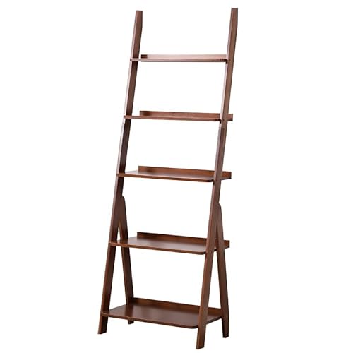 AQIMUELE Walnut Wooden Ladder Shelf with Edges, 5-Tier Modern Leaning Bookshelf Ladder – Stylish Space-Saving Bookcase for Living Room, Bedroom & Home Office