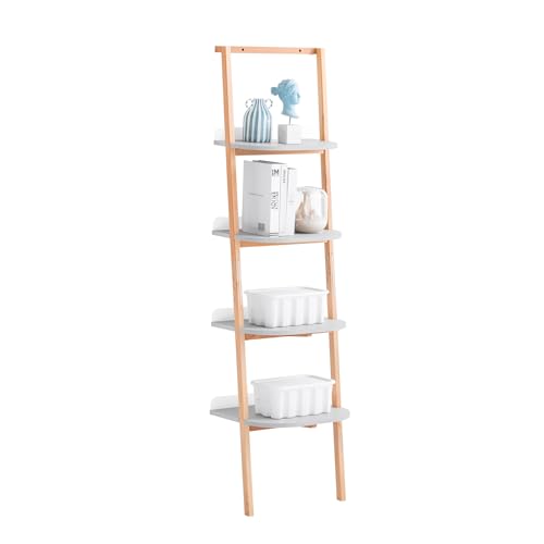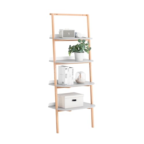SoBuy 4 Tiers Bookcase Bookshelf Storae Display Shelf Ladder Shelf Wall Shelf Grey and Natural W44 x D39 x H169cm HSTR02-K-HG