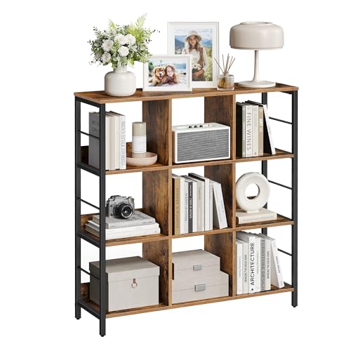 VASAGLE Bookcase, Bookshelf, Ladder Shelf 3-Tier, Display Storage Rack Shelf, for Office, Living Room, Bedroom, 33 x 100 x 103.1 cm, Industrial, Rustic Brown and Black LLS112B01