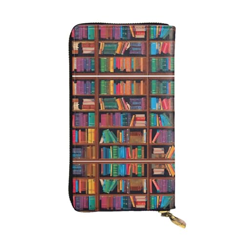 BWPDPXFJ Library Bookshelf Book -Print Slim Leather Wallet with Zipper, 12 Card Slots & Coin Pocket, Luxury Compact Wallet for Travel, Professional Use, Gift Ideas for Her & Him.