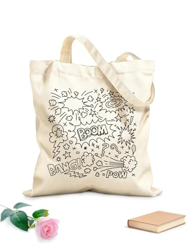 XIARON Reusable Shopping Tote Bag Sticker Icons Hand Drawn Doodle Boom Balloon 340g/m² thick fabric Customizable slogan L Black