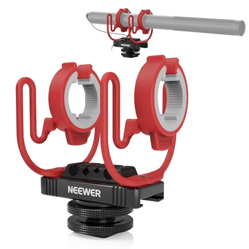 NEEWER Microphone Shock Mount with Cold Shoe, 1/4" Thread for Camera Cages, Boom Arm Pole Stands, Tripods, Mic Holder Compatible with VM15 Rode NTG Series Sennheiser MKE600 Audio Technica AT875R, MH1